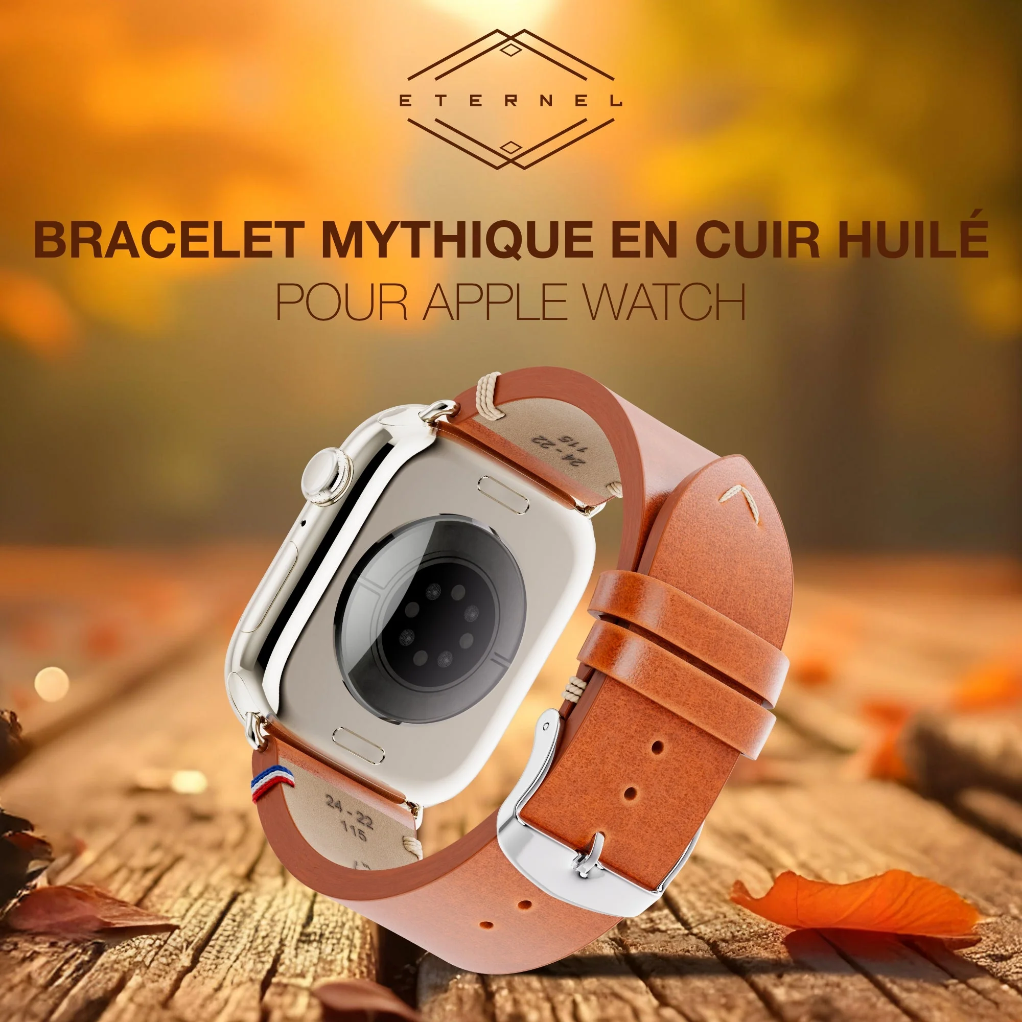 Vintage - Bracelet Apple Watch cuir pleine fleur Logan miel 44mm 45mm 46mm 49mm